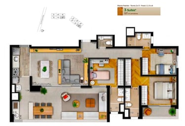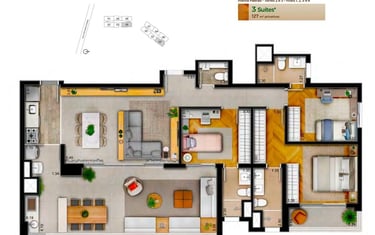 ▪ Área privativa: 127m² privativos