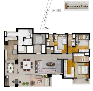 Área Privativa: 157m² privativos