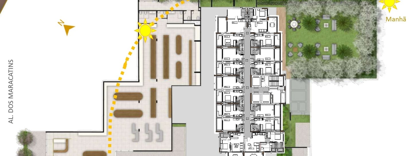 Empreendimento composto por 2 subcondomínios (SETORES) completamente independentes, sendo um de loja com acesso pela Av. dos Jamaris e um de torre de apartamentos (NR e R) com acesso também pela Av. dos Jamaris.ÁREA DO TERRENO TOTAL: 2.110,30 M2