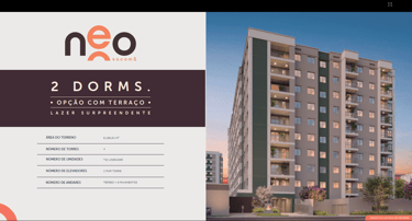 Tipologia: Apartamentos 1 e 2 dormitórios.
