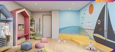 LAZER COBERTO: Brinquedoteca / Coworking / Easy Market / Espaço Gourmet / Lavanderia / Salão Multiuso / Delivery / Fitness Salão de Jogos