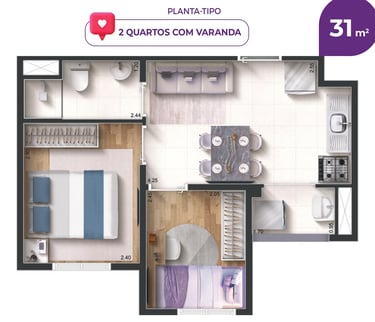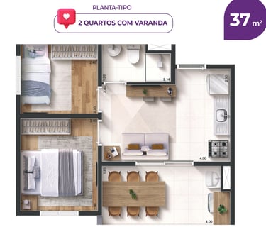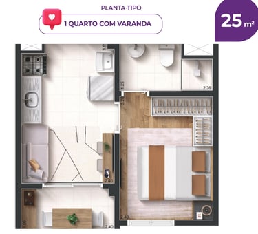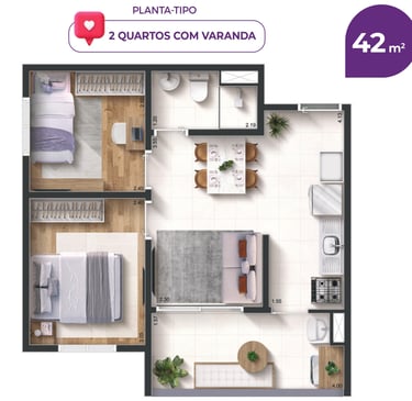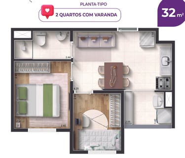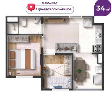 Tipologia: Apartamentos studio, 1 e 2 dormitórios.