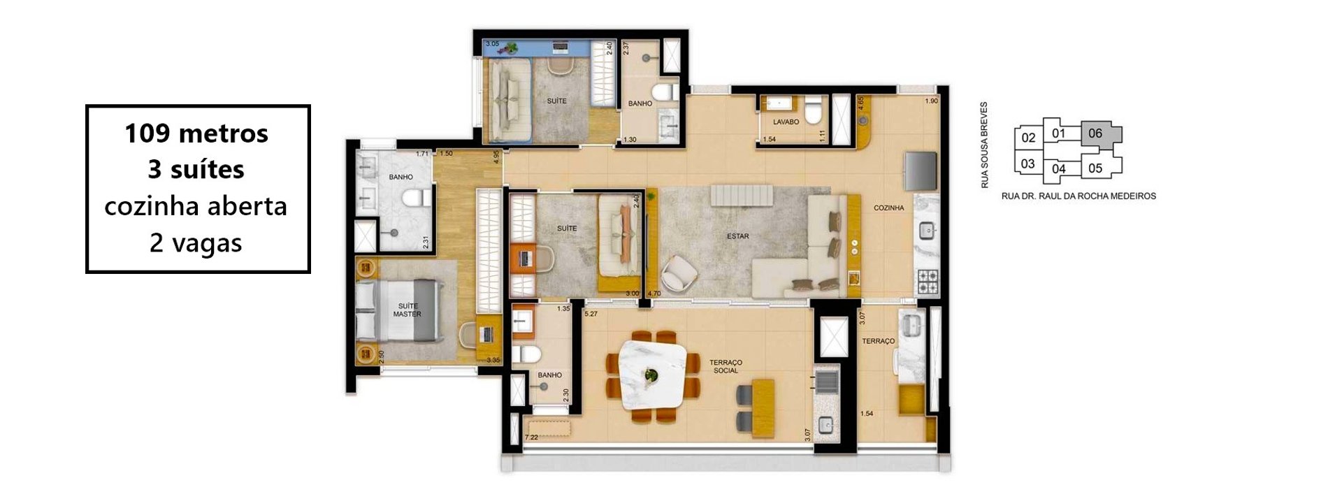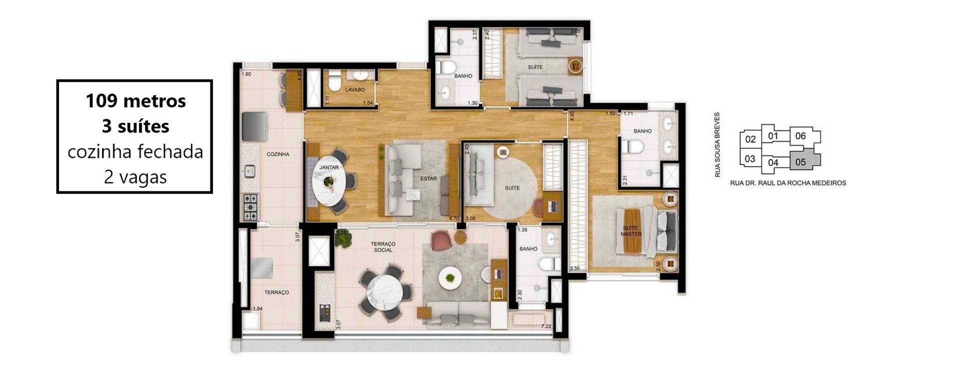 96 unidades de 109m² - 03 suítes - 02 vagas
