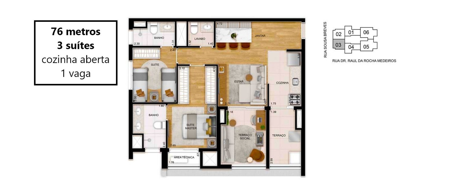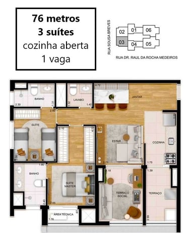 96 unidades de 76m² - 02 suítes - 01 vaga