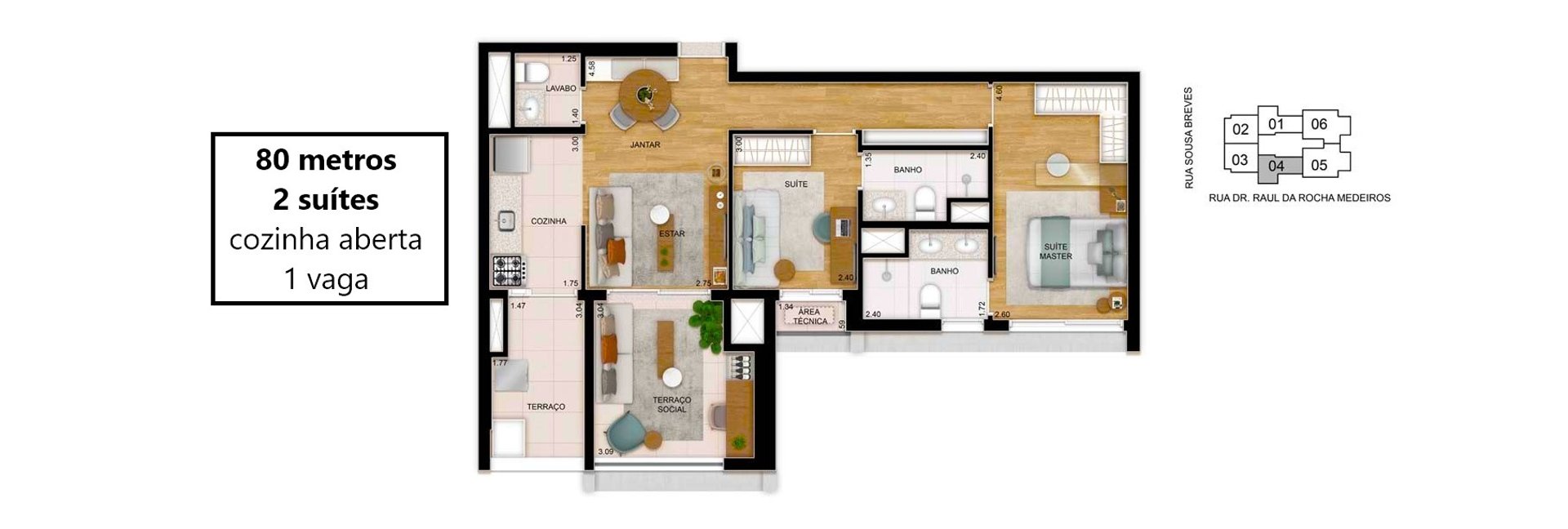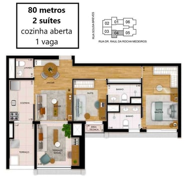 96 unidades de 80m² - 02 suítes - 01 vaga