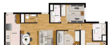 Áreas comuns entregues equipadas e decoradas conforme Memorial Descritivo